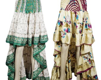 Bohemian 2pc Women Hi Low Skirt Recycled Sari Flare Ruffle Boho GYpsy Summer Cherished Cheer Hippie Skirts S/M