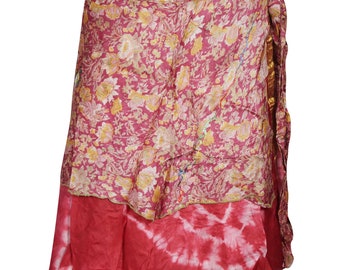 Indian Classic Silk Sari Wrap Skirt Vintage Printed Hippie Boho Magic Skirts Reversible 2 Layer Dress One Size