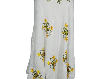 Hippy Boho Bohemian Umbrella Embroidery Dress Summer Beach Sundress Tunic Top L