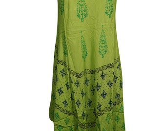 Boho Chic Maxi Dresses Feminine Flattery Handmade Block Print Sleeveless Cotton Festive Long Dress M/L