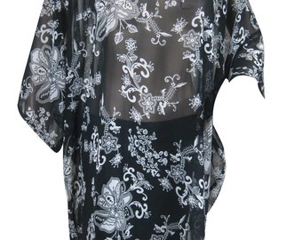 Womens Kaftan Top , Soft Chiffon Floral Cover Up Sheer Beach Caftan, Floral Summer Resort Kaftan ML