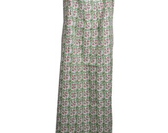 Womens Housedress, Cotton White Green Printed Caftan, Sleepwear Maxi Dress, Boho Nightgown, Caftan Dress, L