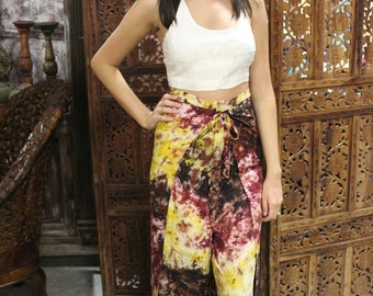 Womens Brown Wrap Pants, Boho Ivory halter Top, MIX MATCH Hippe Boho Chic Summer Fashion M 2Pc Set