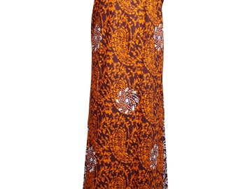 Womens Kaftan Maxi Dresses Orange Brown Block Printed Summer Cotton Nightwear House Dress L