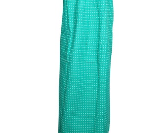 Womens Caftan Dress Green Polka Dot Printed Summer Cotton Comfortable House Kaftan Maxi Dresses L
