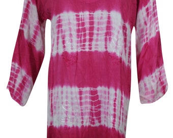 Womens Tunic, Tie Dye Tunic Shirt Tops, Pink Embroidered Boho Loose Full Sleeves Blouse L
