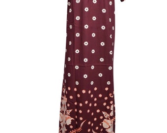 Womens MAxi Dress Strapless Floral Hi Low Dresses Recycled Sari Brown Printed Handmade Coachella Dresses M/L