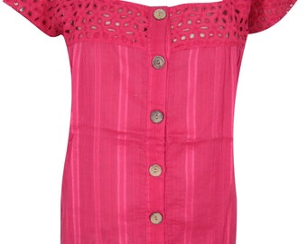 Womens Tunic Shirt Top, Bohemian Blouse, Pink Cotton Gypsy Chic Eyelet Design Top S/M