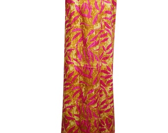 Women's Maxi Skirt, Printed Floral Gold Cotton Skirt, Casual Summer Bohemian Long Skirts S/M