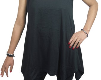 Bohemian Womens Sundress Batik Embroidered Black Flared Hem Swing Sleeveless Summer Tank Dress Cover up XL