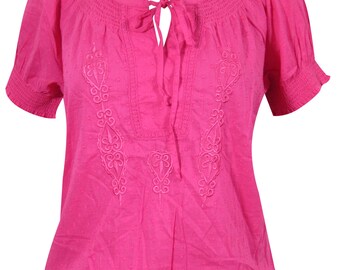 Women's Pink Top, Bohemian Embroidered Cotton Summer Stylish Blouse Tops S
