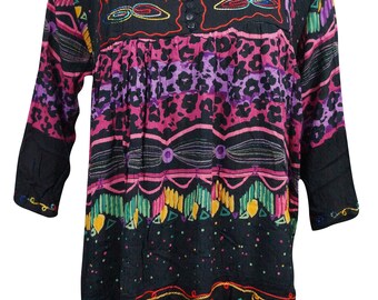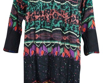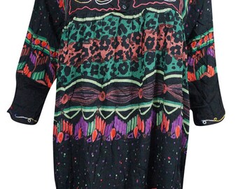 Babydoll Boho Dress Vintage 70s Funky Hippy Fashion Resort Coverup bLACK cOLORFUL loose dresses One Size SML