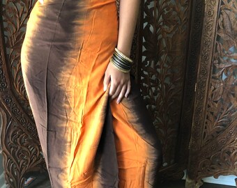 Womens Wrap Around Skirts, Brown Orange Boho Beach Maxi Skirt, Cover Up Resort Wear Sarong SM