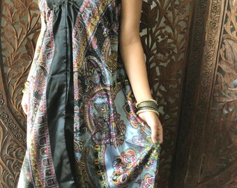 Womens Maxi Dress , Hi Low Summer dresses, Black floral printed, Soft Satin Beach Dress, One Size SM