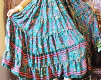 Womens Boho Skirt, Bohemian Green Frill Top bLOUSE Gypsy Bohemian Summer Skirt SM 2PC SET